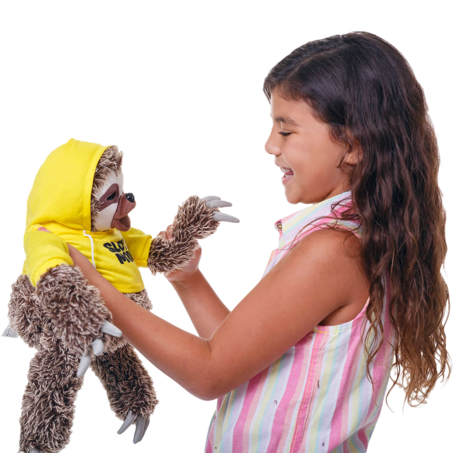 Snax is fully poseable, and can hang from just about anything. His eyes and mouth move as he speaks, and he's made with premium stuffing and extra soft plush materials. He's the perfect buddy to cuddle and snuggle with.